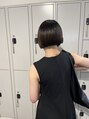 - 襟足をギリギリまで短くして、顔周りを前上がりに切り込んだコンパクトなボブにしました。