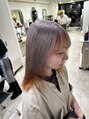 前処理をしてケアをしながら出来る限りの色素を抜き根元からホワイトシルバーベースに毛先はオレンジの周りとは少し違う個性なカラー!