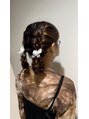 編み込みスタイルからの毛先を丸め輪っかを作りました♪リボンはでかいのではなくあえて小さいのにしています!もちろん大きいリボンも可愛いです!