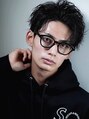 フェザーパーマ/ブルーブラック/刈り上げセンターパート[新宿]