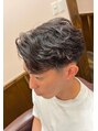 スパイラルパーマかけられてる方で、耳元をスッキリ出して、ツーブロックも短めの3mmを使ってるので、締りがよく男らしく見えます。