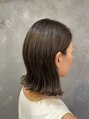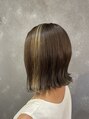 カットはミィディアムの切りっぱなしボブで、外ハネしたりアレンジできる長さです。カラーは、ポイントで白髪の多い部分をブリーチでぬいてから、全体をマットアッシュで被せました。