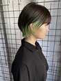 インナーにペールグリーンで表面もオリーブ系の透明感のある暗めのカラーで仕上げました!ペールトーンはブリーチ2回~がおすすめです!