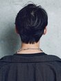 韓国で流行っているセンターパートスタイル。内側にソフトな2ブロックを施してスッキリとさせ、襟足は首に沿うようにキレイなシルエットになっている。サイドの後ろへの毛流れがポイント。