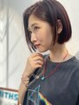 シンプルなワンレンのミニボブに濃いめのピンクカラーで変化をつけて。暗めトーンのアッシュカラーに飽きたら、秋冬に向けてもピンクカラーはおすすめです。ダークトーンのファッションにも映えます。
