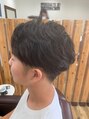 後ろに流れるゆるめのパーマでセットも楽々☆ツーブロックと刈り上げをするとさらにメリハリのあるスタイルになります♪セットが苦手な方にもおすすめのスタイルです!