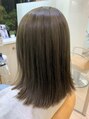透明感のあるオリーブベージュが可愛いミディアムスタイル。こちらの方はブリーチベースですが場合によってはブリーチなしのダブルカラーでも近い仕上がりにする事もできます◎