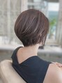 前下がりショートボブをベースにアディクシーカラーで赤みを抑えたヘアスタイル。短すぎず優しい丸みは女性らしいショートカットになります。