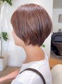 前下がりショートボブスタイル30代40代50代の大人女性におすすめの髪型です。色味を楽しめる白髪染めで艶カラー!香草カラーでダメージ少なくオーガニックカラーも!ハイライトやリタッチもおすすめです。癖が気になる方は縮毛矯正のご相談下さい。