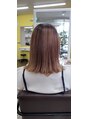 自然な感じに縮毛矯正かけてそとはねにカットしました。カラーはピンク系でハイライトも入れてますが、フローディアトリートメントでつやつやに!