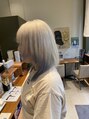 ホワイトカラーに毛先にアクセントカラー姫カットレイヤー フェイスフレーミング フェザーショート クラゲヘアー アプリコットオレンジ マロンベージュ 刈り上げボブ エンドカラー ホワイトブロンド