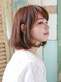 やや長めなバランスで厚みを残したボブスタイルに大きめのカールをプラスして韓国風のフェミニンな雰囲気のボブスタイルに。