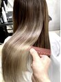 少しクセが気になるけどブリーチが必要な透明感カラーがしたい人に向けた提案。他店とは違うストレートヘア+透明感カラーが手に入り、縮毛矯正ではなく、ツヤツヤで自然なストレートヘアになれる独自理論のリピート率99%のケラチントリートメント。担当 高沼