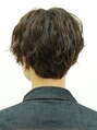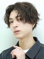 目の下くらいの長さのセンターパートに波巻きパーマをかけます!襟足はスッキリした長さで清潔感のバランスを作ります!