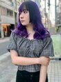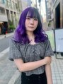 ブリーチ回数1回~フロント部分にポイントで黒をいれたデザインカラー○原色の紫をいれて、色持ちもよくなるようにしました○黒はブリーチで落としやすいようにフェイクブラックでカラーしてます!
