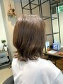 肩に付くくらいの外ハネミディアムスタイル。中の毛量を減らしボリュームを抑えて毛先を巻きました^ ^オリーブカラーでオシャレな色味に♪
