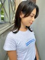 地毛のツヤ感を最大限に生かせるオリーブベージュ。オイルで少しウェットなスタイリングにすることで、今っぽいヘルシーなヘアスタイルに◎