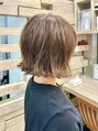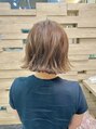 明るめのブラウンベージュカラーに切りっぱなしボブの組み合わせです。