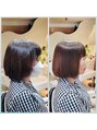 パサパサ広がりボブからの髪質改善酸性ストレートとドライカットにてキレイめボブへ変身しました。酸性ストレートでいらっしゃるお客様の殆どがキューティクル破損やセニングし過ぎの水分不足や油分不足です。