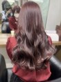 ブリーチなしのカシスピンクカラー◎ワンカラーでツヤツヤの韓国風ヘアに♪仕上げは26mmのコテで外巻きにしてブラシでほぐしてからオイルを仕上げにつけました◎明るすぎず、暗すぎず大人っぽさもでるようにカラーしました○