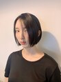 ワンカールのゆる巻きのみで仕上げた、やわらかショートボブ。前下がりのシルエットバランスが大人っぽくみせるポイントです!!カラーはアッシュブラック!!