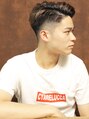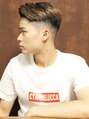 トップを長めにしてアウトラインをすっきりとさせたツーブロックショート。サイドパートで上げれる様にサイドとツーブロックラインのつながりをよくさせています。カラーは根元の黒い部分を残してブリーチし、グレージュの色味をかぶせます。