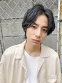 つくりこまないラフなセンターパートパーマスタイル。ウェットな質感のでるジェルグリース系のスタイリング剤で仕上げることで色気をプラス。前髪を下ろしてマッシュパーマスタイルを楽しんでも◎