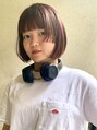 カットは乾かすだけでまとまる「ミニボブ」に顔周りにデザインを効かした「ぷつっとバング」. カラーは柔らかみのある「ピンクブラウン」. 暖色カラーはお肌との馴染みも良く艶感が出てより綺麗に見えますよ◎
