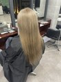 ブリーチ二回からのハイトーンベージュ元々切れてしまっていた毛先はエクステ60枚で長さを出しつつ量感も♪
