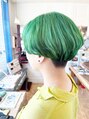 ・バック、サイド刈り上げてマッシュショート・カラーは全頭ブリーチしナチュラルなグリーングラデーション