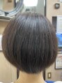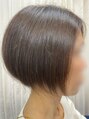 毛量が非常に多い方ですが、襟足に微妙に段差を付けて、前下りのボブスタイルにする事で、スッキリとした表現ができます。