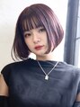 アゴラインボブ前髪ぱっつんシースルーバングピンク/ホットペッパービューティー