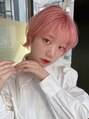 淡いペールトーンでも彩度のあるピンクカラー。アンダーを外ハネにして、くびれのあるショートウルフです。