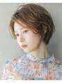 【気に入って頂いたスタイルは、ブックマークをしてご提示ください】baseをブラントカットでシルエットを作り、質感調整で柔らかさを出しました。丸いひし形シルエットはショートの王道です!