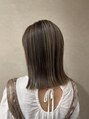切りっぱなしのスタイルに動きを出すハイライトを組み合わせたスタイルです!ハイライトは、はち上に数枚入れているだけなのでダメージが少なく初めてハイライトをする方にオススメです♪全体は寒色ベージュにしました。