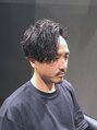 毛束がランダムな動きを出すと大人の色気が出てスタイリッシュに!ビジネスマンに大人気の無造作メンズパーマスタイルです。サイドとバックはツーブロックで刈り上げて膨らみを抑えています。やや前下がりのベースカットでどこから見ても美しいシルエット!