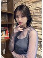 柔らかいニュアンスストレートに、自然に外ハネしたミディアムヘア。シースルーバングでより軽やかなイメージをキープ。