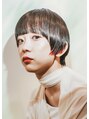 顔まわりを包み込むようにショートボブ。もみあげにポイントでインナーカラーレッド。
