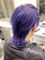 ブリーチ2回のペースで原神の雷電将軍をイメージしたカラー!前髪からサイドにかけて深い青紫のメッシュも入っており、そのほかの部分には薄紫のグラデーションが入っているデザインカラーになってます!