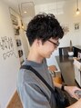 サイドとネープはすっきりさせて、トップに遊びを効かせたニュアンスパーマ。