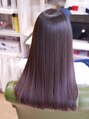 ダメージ軽減の髪質改善でツヤツヤストレートに。カットは髪質改善がいきるようにレイヤーとスキを入れずにカットしました。
