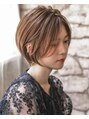 【気に入って頂いたスタイルは、ブックマークをしてご提示ください】baseをブラントカットでシルエットを作り、質感調整で柔らかさを出しました。丸いひし形シルエットはショートの王道です!