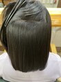 クレンジング、中間処理、アフタートリートメントをしながらの縮毛矯正。とても艶やかな髪になりました。3枚目はbeforeのお写真です。