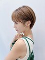 大人ショート×ナチュラルブリーチ透明感カラー。襟足の髪はやや短め、耳にかけれるサイドの髪、少し斜め流せる前髪、女性らしさ残るデザイン。ナチュラルブリーチをしてカラーをすると可愛さが増します!ワックスを揉み込むだけの簡単スタイリングです!