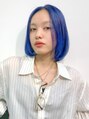 重すぎない丸みボブに鮮やかなブルーを合わせてみました。顔がくすまないように、あえて鮮やかなブルーをチョイスしています。