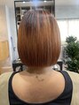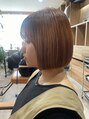- カット、ダブルカラー、ワンレンボブ、オレンジベージュ