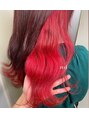 インナーをブリーチ1回してカラーバターでビビッドなレッドカラーに!メニューにお悩みの方は“フリークーポン”ご利用ください!初めての方もご相談乗ります◎