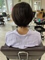 お手入れが簡単なショートボブです。短くなりすぎないので、ショートにしてみたいけど、少し勇気が無いと言う方も、顔周りは比較的長いのでおススメです。