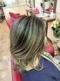ミディアムレイヤー× バレイヤージュ グレージュカラー