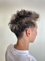 サイドはツーブロック襟足は刈り上げて前髪残しめのショートヘアにハイライトカラー、ソフトなスパイラルパーマをかけました。